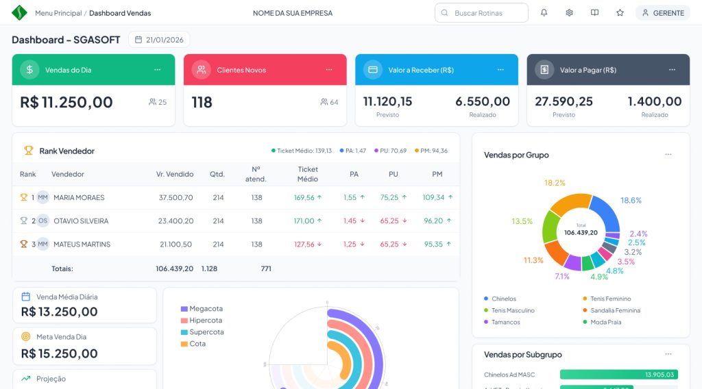 O maior problema do varejo não é vender. É não confiar no que o sistema mostra. A SGASoft elimina esse ruído, alinhando vendas, estoque e fiscal em uma única base confiável.