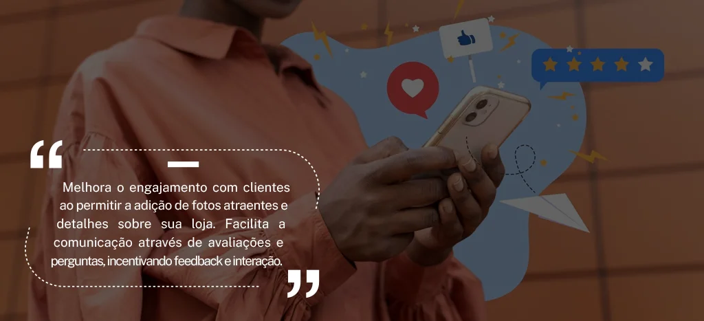 • Interação com Usuários: Melhora o engajamento com clientes ao permitir a adição de fotos atraentes e detalhes sobre sua loja. Facilita a comunicação através de avaliações e perguntas, incentivando feedback e interação.