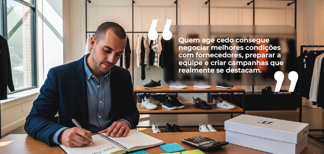 Lojistas que se organizam meses antes conseguem negociar com fornecedores, preparar a equipe e criar campanhas que realmente funcionam para vender mais e melhor. Além disso, planejar com antecedência não é um detalhe: é o segredo para transformar essas datas em um período de caixa cheio.