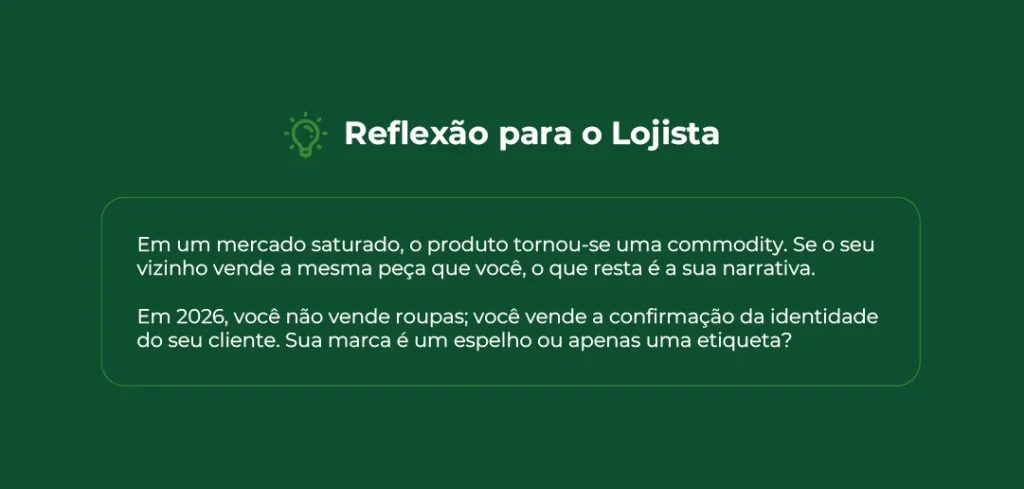 Afinal, no centro dessa mudança, reside uma provocação que todo lojista precisa encarar: por que alguém escolhe a sua marca quando o produto do vizinho é praticamente igual?