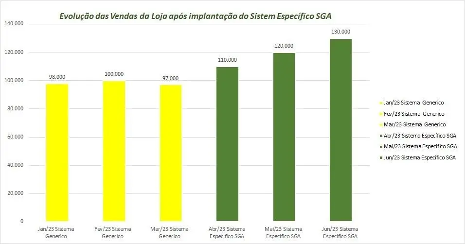 Evolução das vendas após organização do estoque com o Sistema SGA
